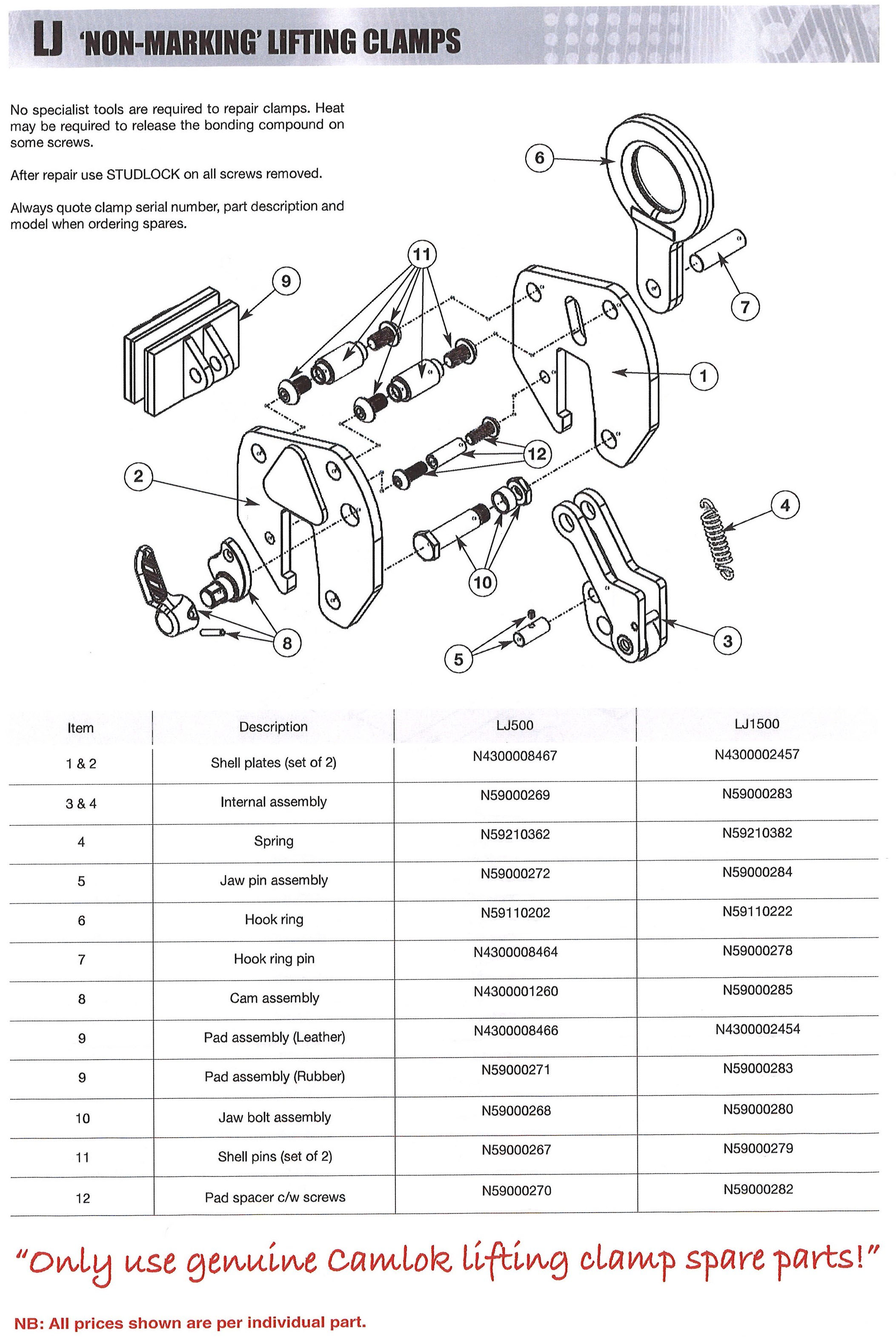 WARNING: The non marking LJ clamp should not be subjected to any side loading if possible. Any side loading will detract from the load carrying grip with the risk of slipping. We still show the 15degree tolerance but I would strongly recommend that the clamp is used with no side loading. The LJ clamp should not be used on two leg slings