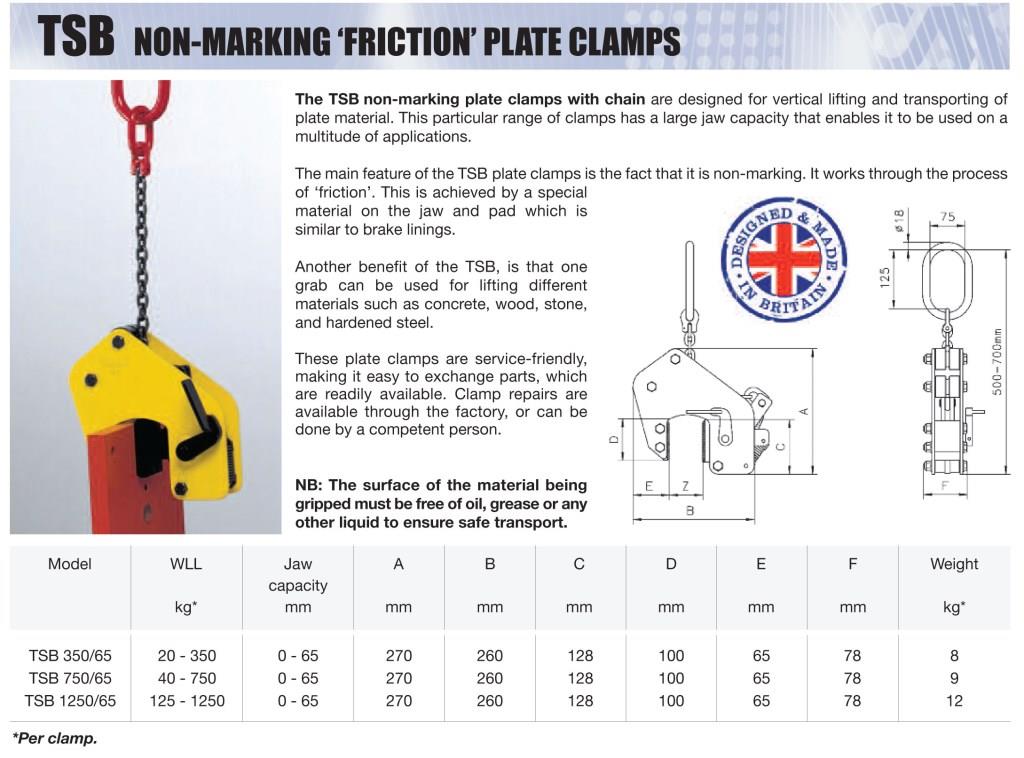 Extra Info: There is no upper limit of material hardness for a Gentle Grip Clamp as they do NOT grip by "Teeth" like a conventional vertical clamp. The Camlok LJ & TSB Clamps grip by friction.