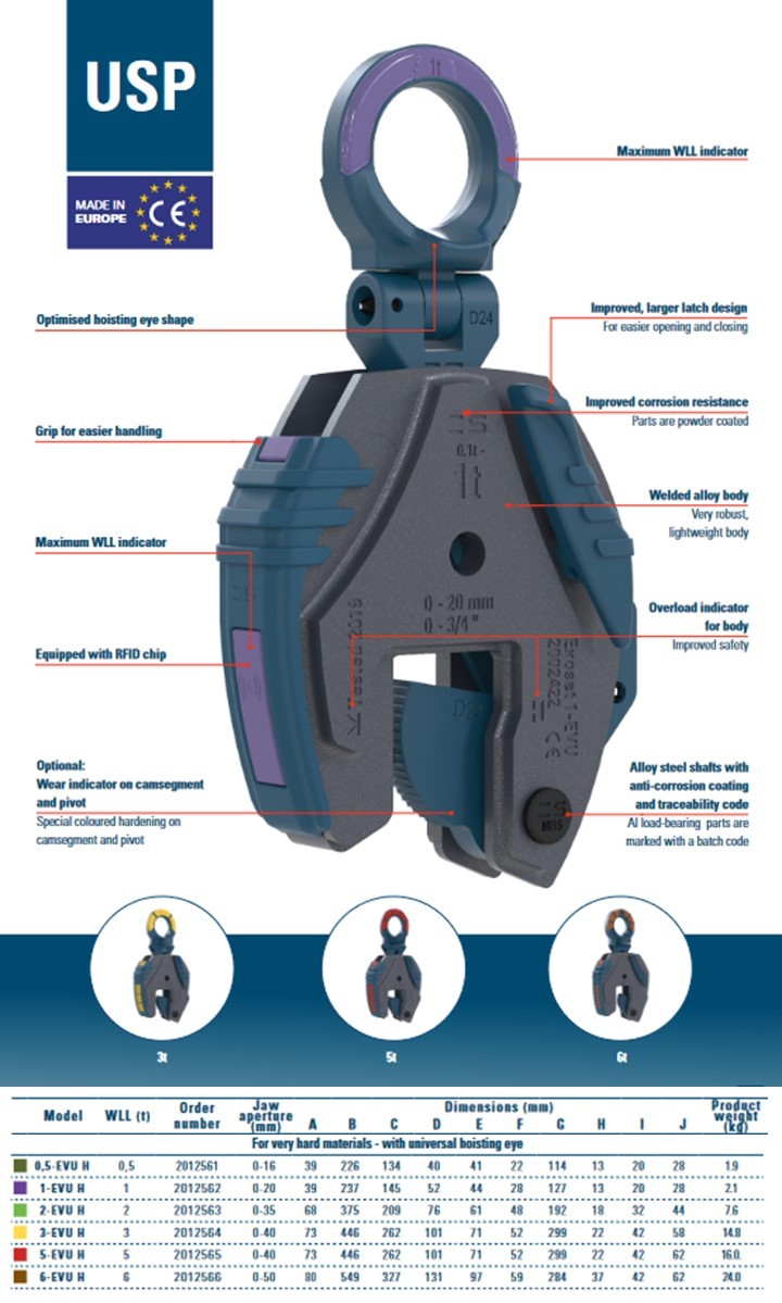 • Suitable for lifting, turning (180°), moving and vertical transfer of sheet, plates and constructions.