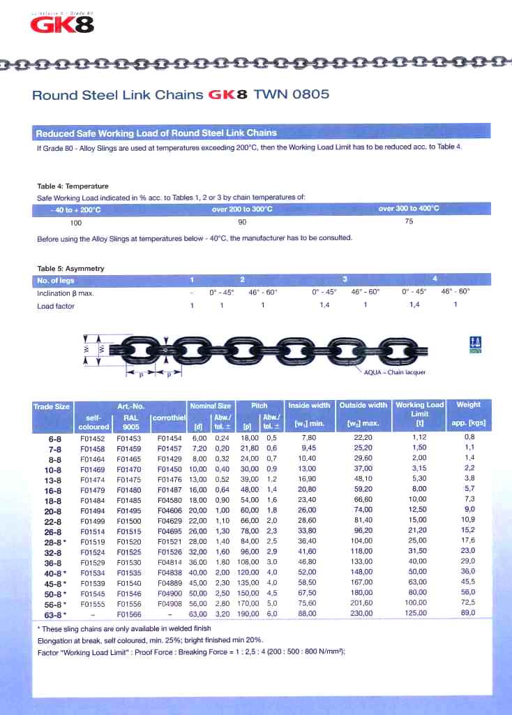 NOTE: All chain is cut to leg length "MINUS" one link. We only sell per "FULL" metre.