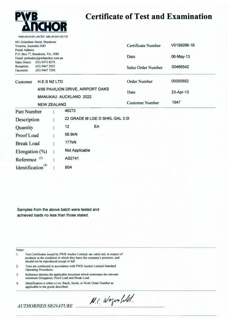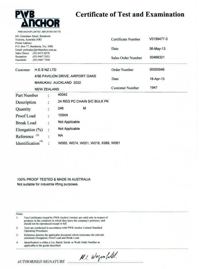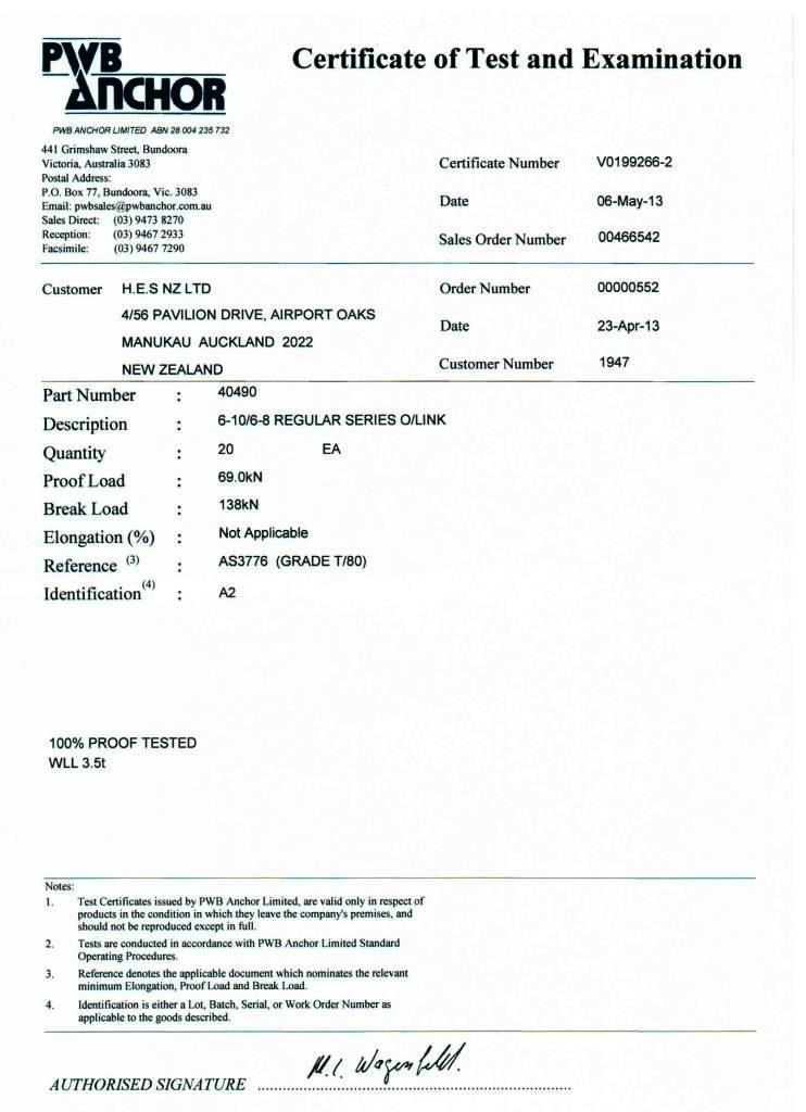 - PWB G80 20mm Cert
